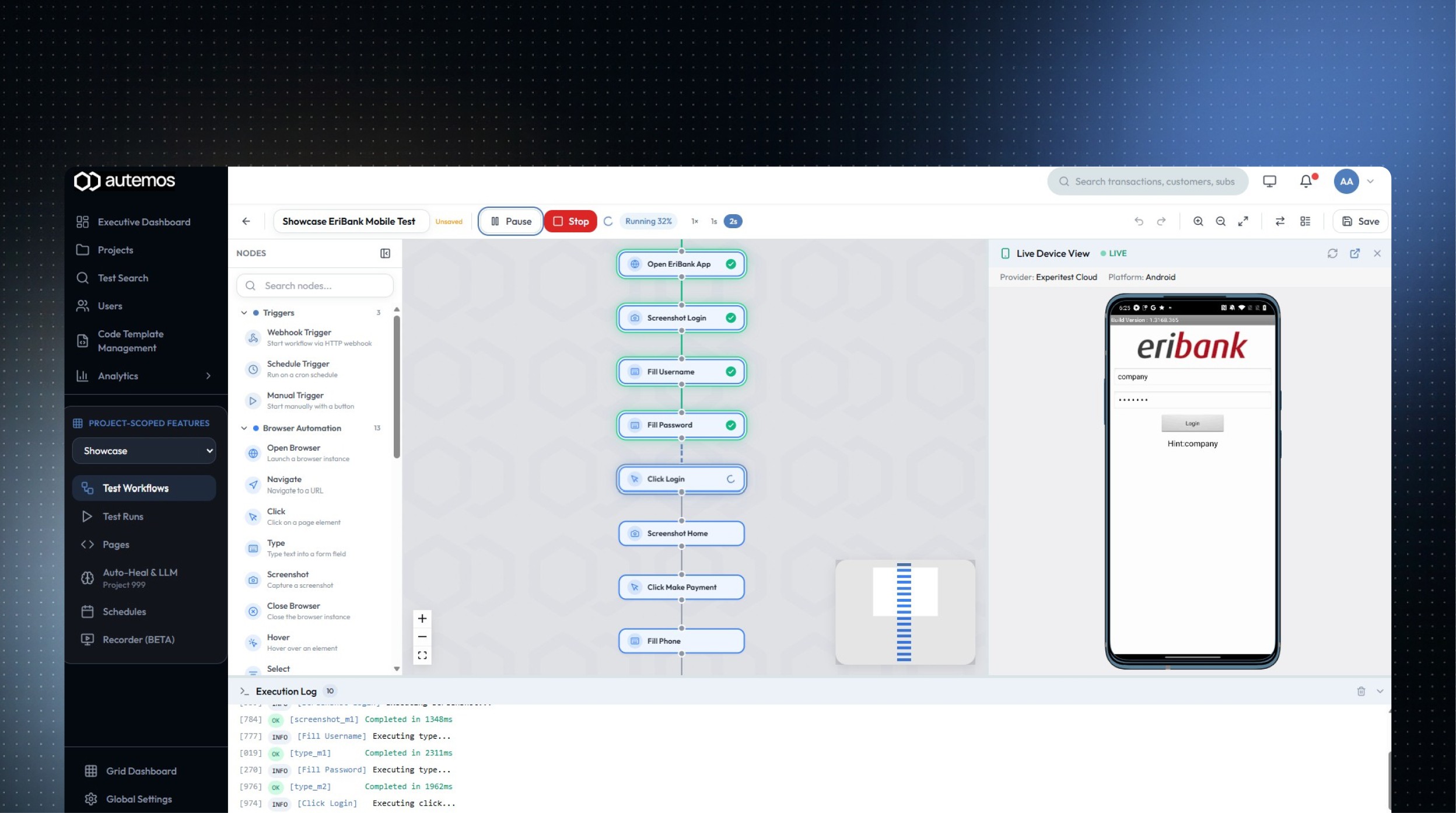 Erstelle automatisierte Tests per Drag & Drop und erweitere sie bei Bedarf mit Code. Autemos verbindet No-Code Geschwindigkeit mit der Flexibilität echter Testframeworks.